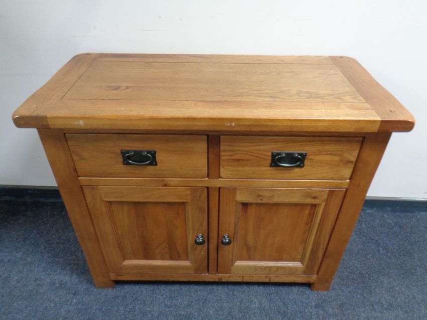 A contemporary oak double door cupboard fitted two drawers