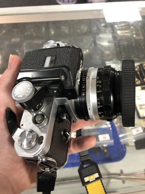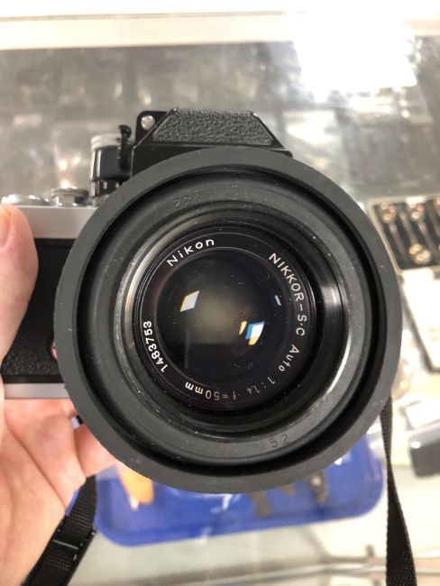 A Nikon F2 camera number 7627934 with Nikon Nikkor Auto 1 : 1.4 F=50 mm lens number 1483753, a further Nikkor 28 mm 1 : 2.8 lens number 387852