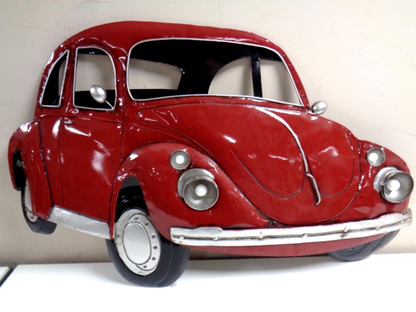 A battery operated enamelled sign in the form of a car