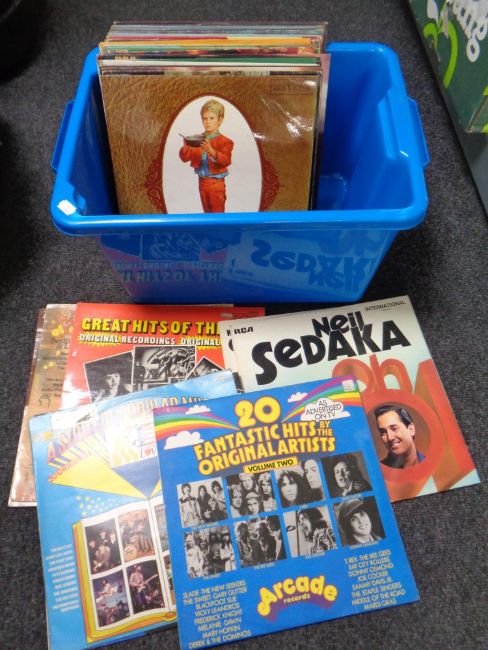 A box containing a small quantity of vinyl LPs to include, Elvis, Four Tops, compilations, musicals.