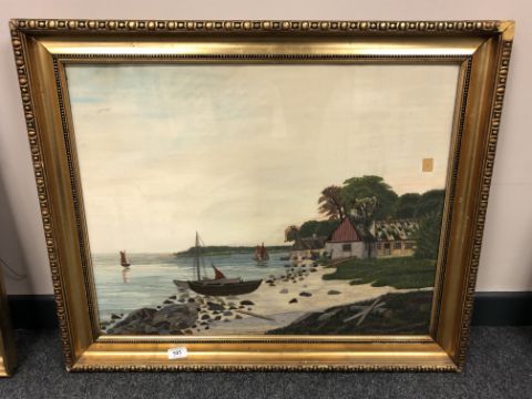 An embroidered picture depicting a beach, 66 cm x 52 cm