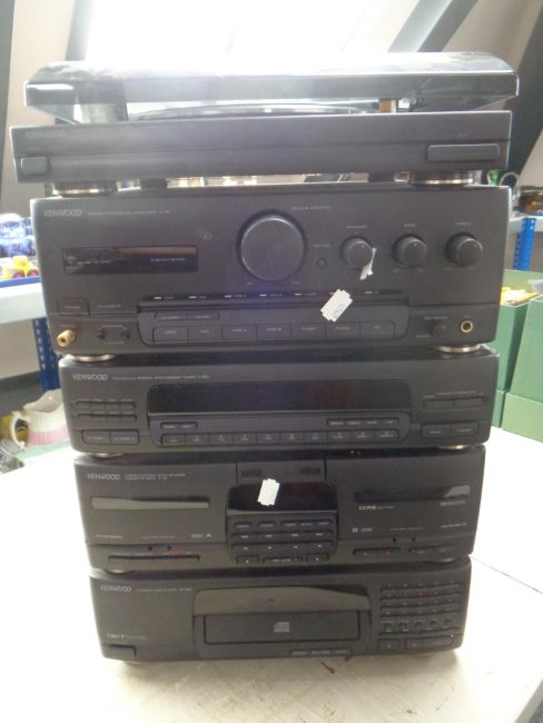 A Kenwood hifi separate system with further box of remote, leads and manual