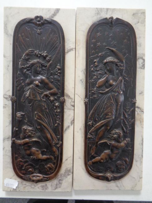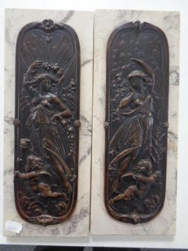 A pair of Art Nouveau style bronzed plaques