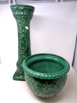 An English pottery jardiniere on stand