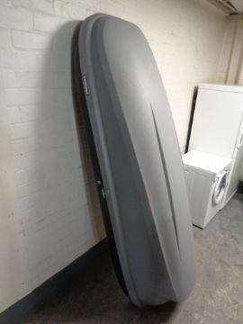 A Halfords car roof box with key