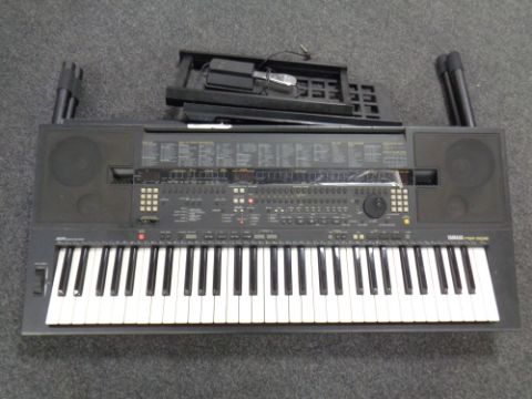 Yamaha PSR-5Q16 Keyboard on stand with foot pedal.