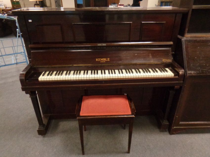 A mahogany cased overstrung piano by Kemble of London together with storage piano stool