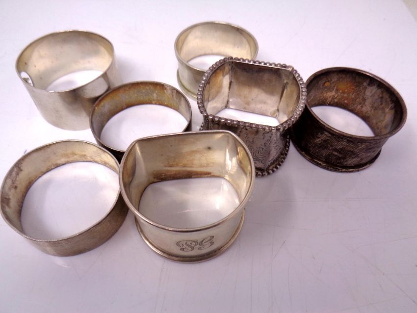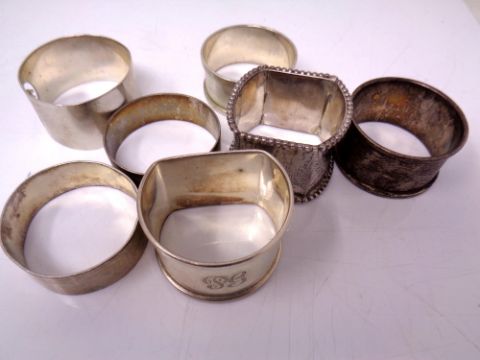 Seven various hallmarked silver napkin rings