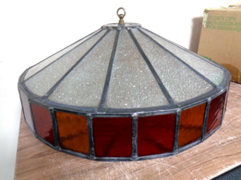 An impressive pair of early 20th century stained leaded glass billiards lights