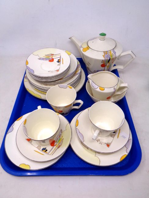 A tray of 27 pieces of Tams Ware Woodland Art Deco tea china