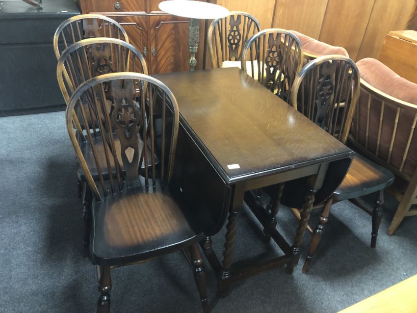 A gateleg table together with a set of six Windsor chairs