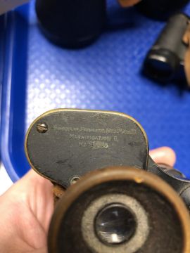 A tray of three pairs of binoculars to include Aloma Tokyo 20 x 55 Falcon field glasses, Carl Zeiss field glasses dated 1915 and one further pair of 6 x 30 binoculars