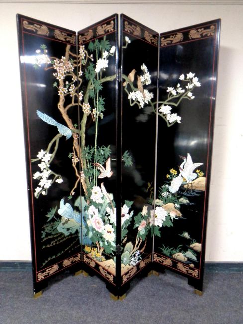 A Japanese style four fold lacquered screen / room divider