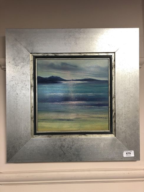 David Fisher (b. 1963) : Afternoon Light West coast of Scotland, oil on board, 47 cm x 47 cm, signed, framed.