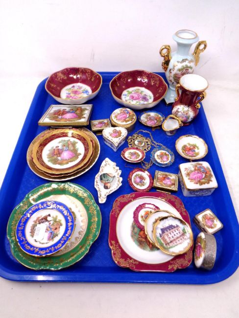 A tray of Limoges porcelain including trinket pots, dishes, twin handled vase etc