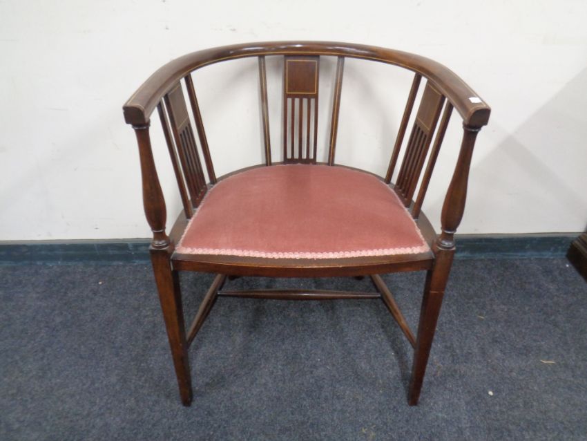 An Edwardian inlaid corner chair.