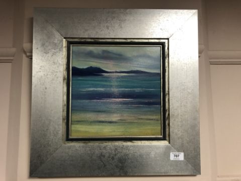 David Fisher (b. 1963) : Afternoon Light West coast of Scotland, oil on board, 47 cm x 47 cm, signed, framed.
