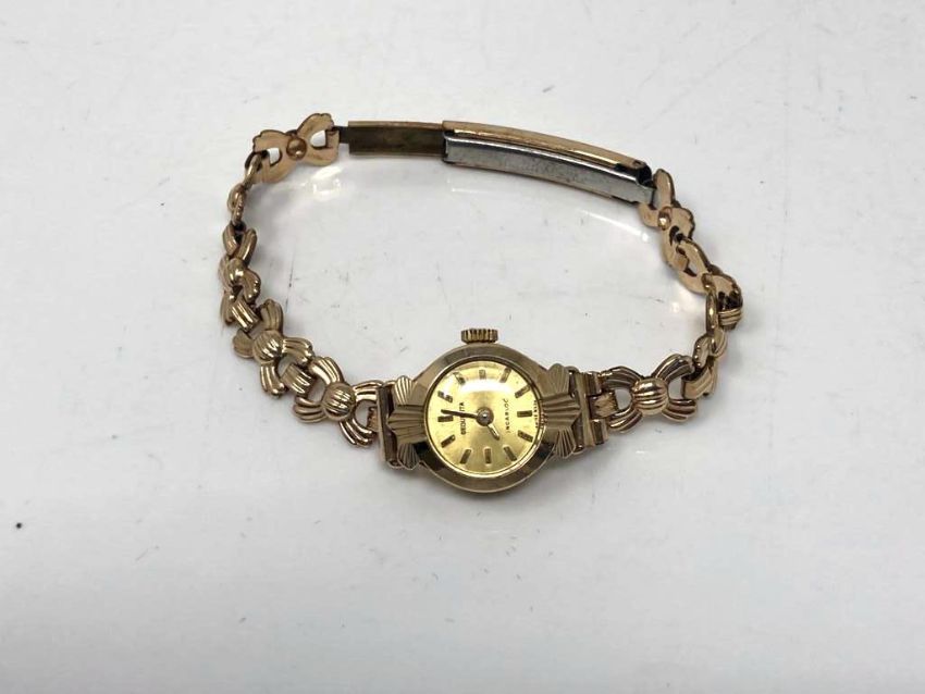 A lady's wristwatch with 9ct gold case on rolled gold bracelet