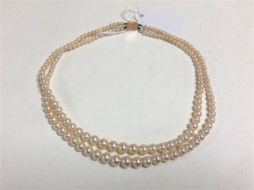 A double strand of Ciro cultured pearls on 9ct clasp