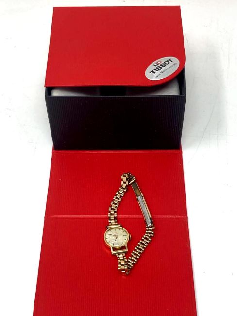A lady's Tissot 9ct gold cased wrist watch with metal bracelet