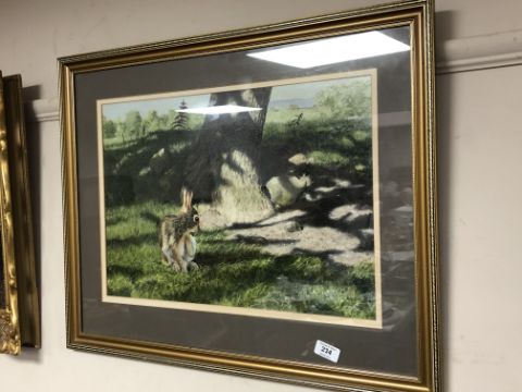 Rex Flood : Rabbit by a tree, oil, signed