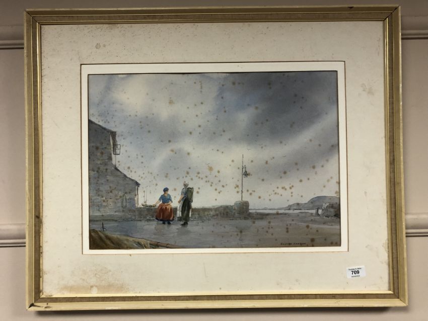 Edward Emerson : Fishwives on a Quay, watercolour, signed, 36 cm x 51 cm, framed.