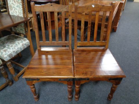 A rectangular Sheesham wood dining table and four chairs