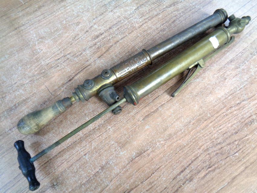 Two antique brass garden sprayers
