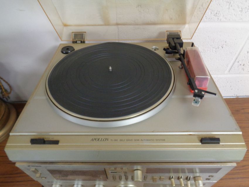 Three Tensei HiFi separates including cassette deck, integrated amplifier and stereo tuner with an Apollon belt drive turntable (continental wiring)