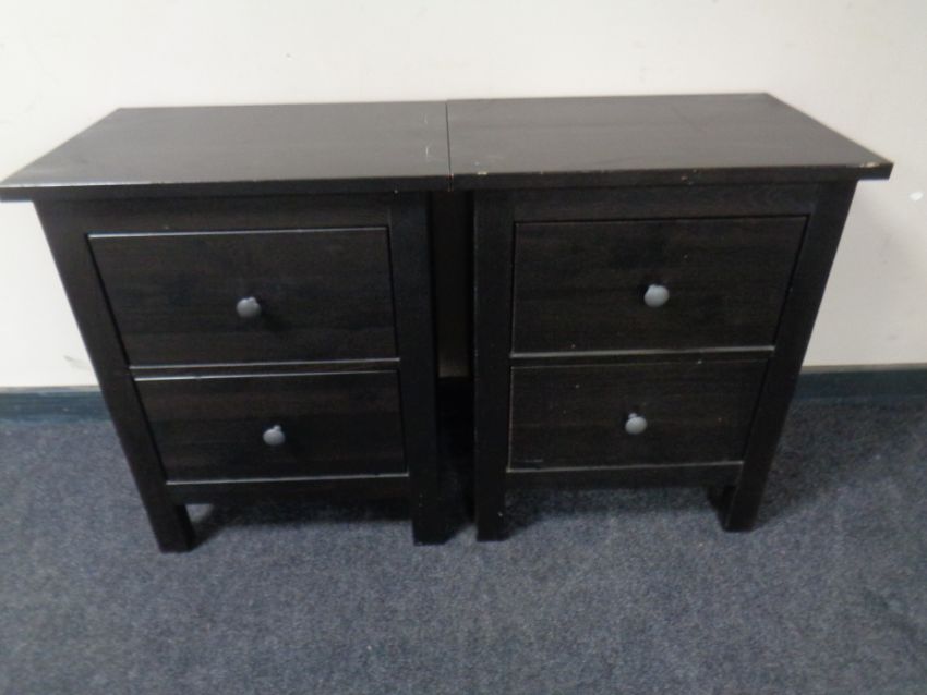 A pair of stained ash two drawer bedside cabinets