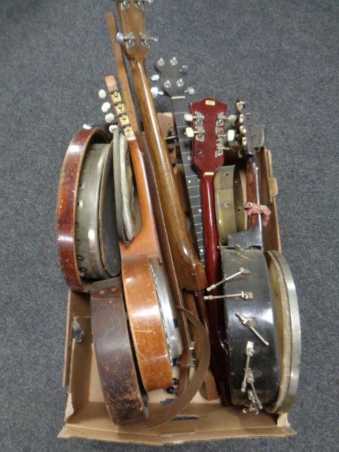 A box of various banjo parts (for restoration)