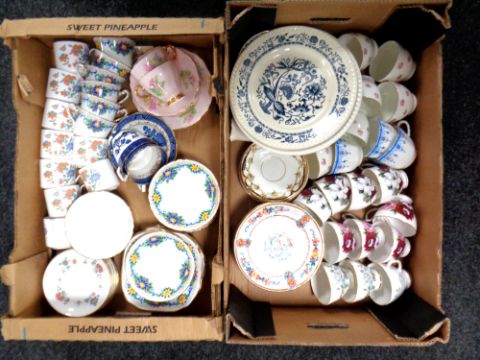 Two boxes of various tea china including Phoenix, Sutherland, Crown Royal etc
