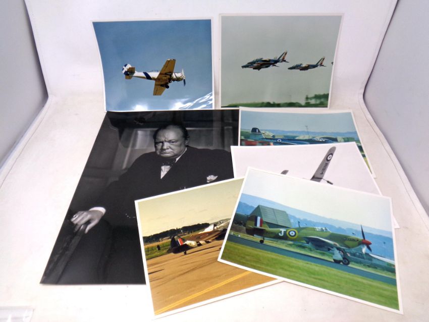 Winston Churchill in 1941 (later print), British Prime Minister visited Ottawa, Canada and sat for a sitting with photographer Yousuf Karsh. Together with 6 colour and black and white photos of war fighter jets.