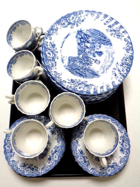 Thirty-four pieces of Johnson Brothers Coaching series tea and dinner ware