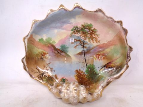 A hand painted shell shaped dish