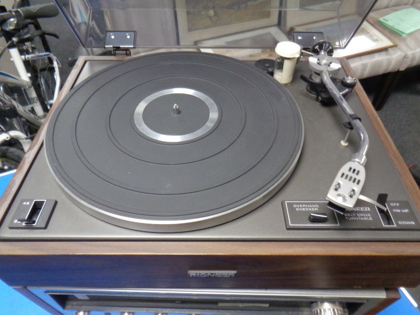 A Pioneer self drive turntable together with a pioneer stereo receiver model SK-434 and a Pioneer stereo cassette tape deck model GT-F2121