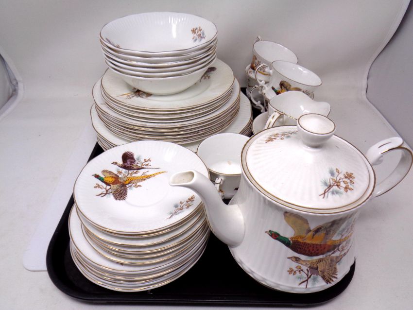 A pheasant-patterned 42-piece bone china tea and dinner service.