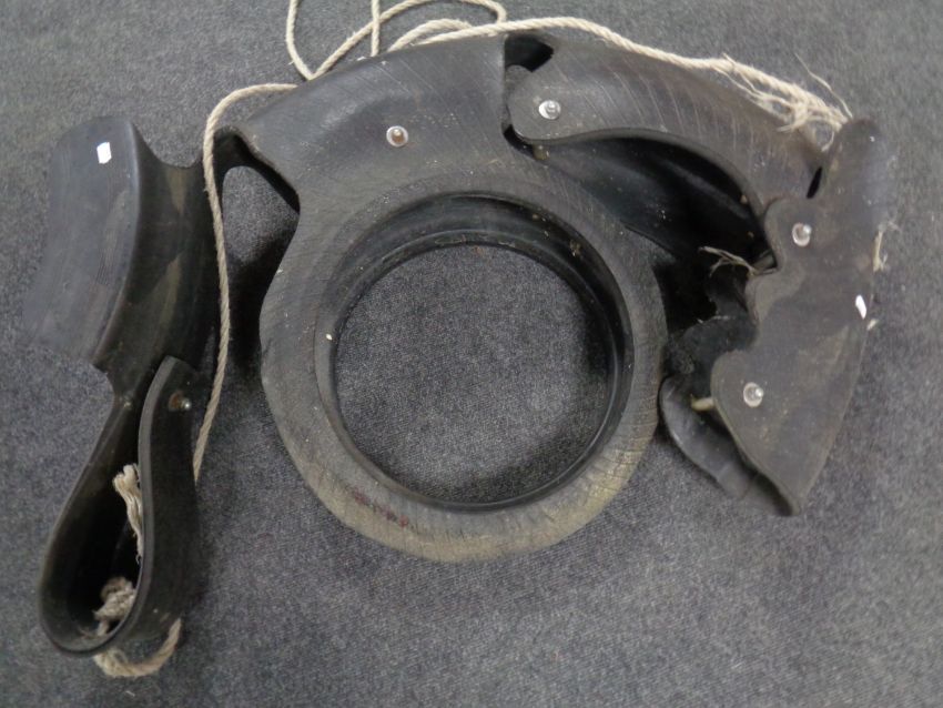 A tyre swing in the form of a horse.