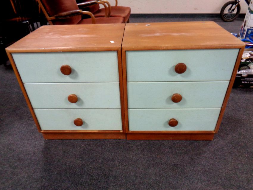 A pair of 20th century two tone three drawer bedside chests