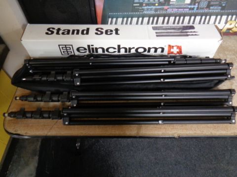 Two Elinchrom twin tripod stands (one with carry bag and box).