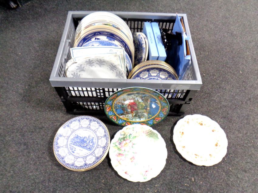 A box containing a quantity of assorted collectors and wall plates including Ringtons, Wedgwood, Royal Albert etc.