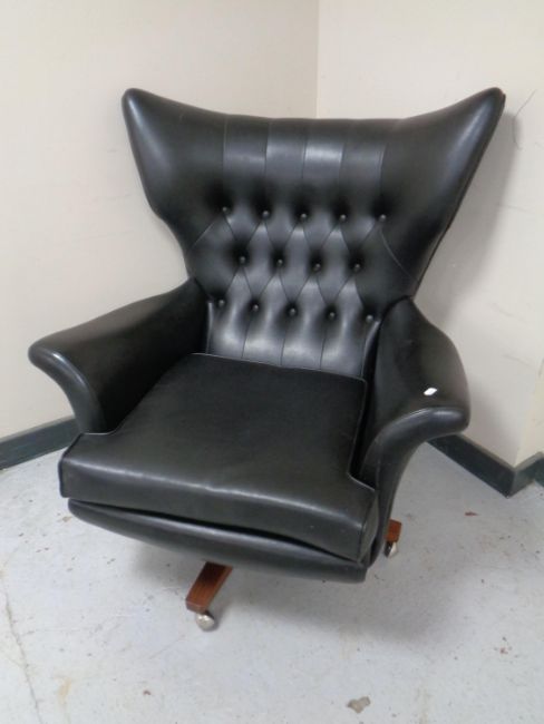 A 1960's vintage G-plan swivel armchair in black vinyl