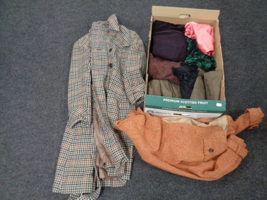 A lady's Dannimac three-quarter length tweed coat with belt together with further vintage lady's clothing.