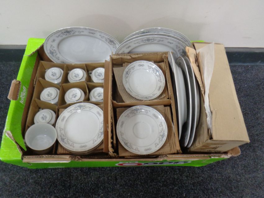 A box containing a Japanese Diane porcelain tea and dinner service.