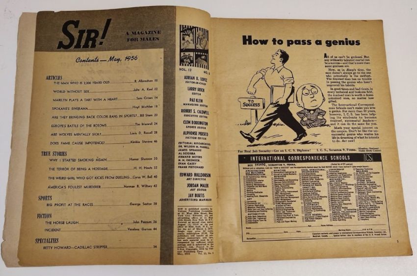 Sir! 1956 magazine Volitant-Marilyn Monroe cover & 5 page feature with photos-Cheesecake pix-dancers.