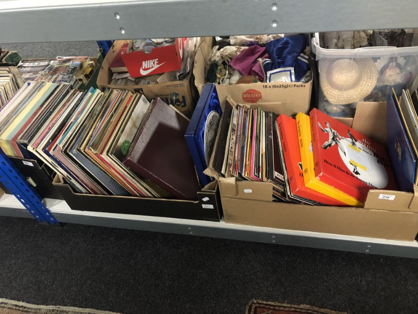 Two boxes containing a quantity of vinyl LPs including Dean Martin, Frank Sinatra, Mama Cass, easy listening etc.