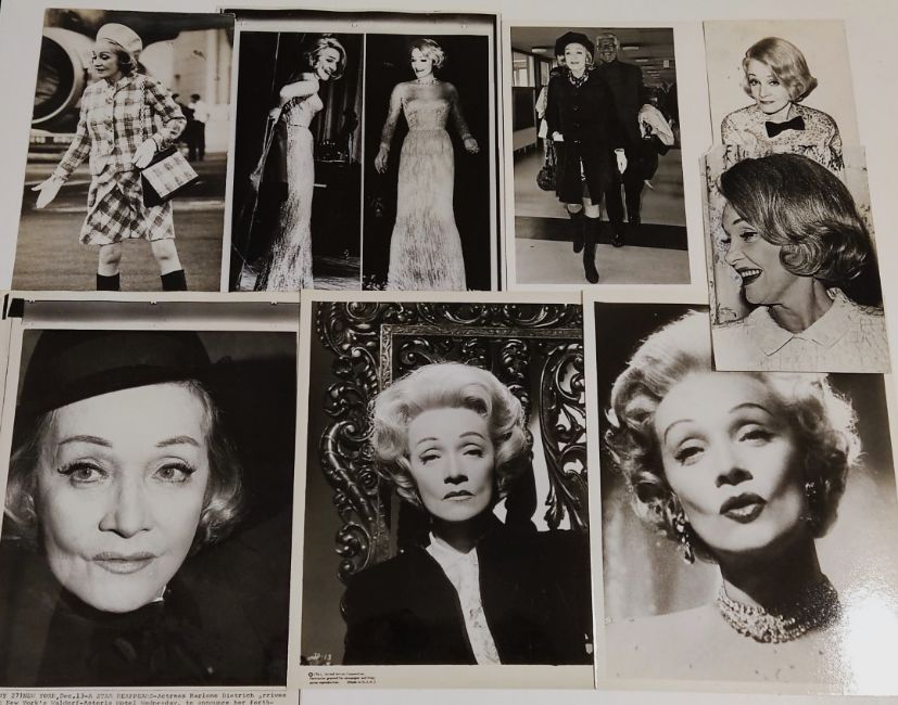 1960's and 1970's Marlene Dietrich vintage photos. A nice selection of black and white photos of Marlene Dietrich with press stamps and annotations on the backs.