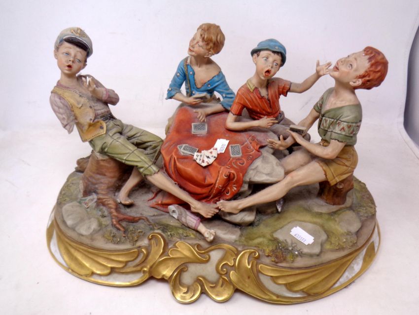 A Capodimonte figure group of a card game. (as found)