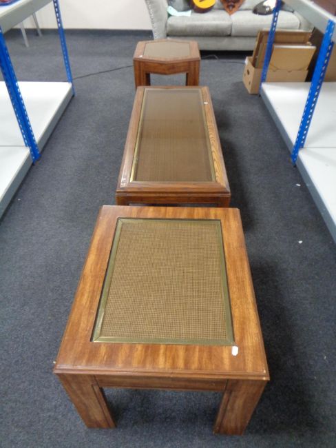 A reproduction coffee table together with two lamp tables.