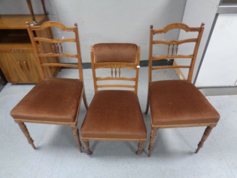 Three Victorian salon chairs.